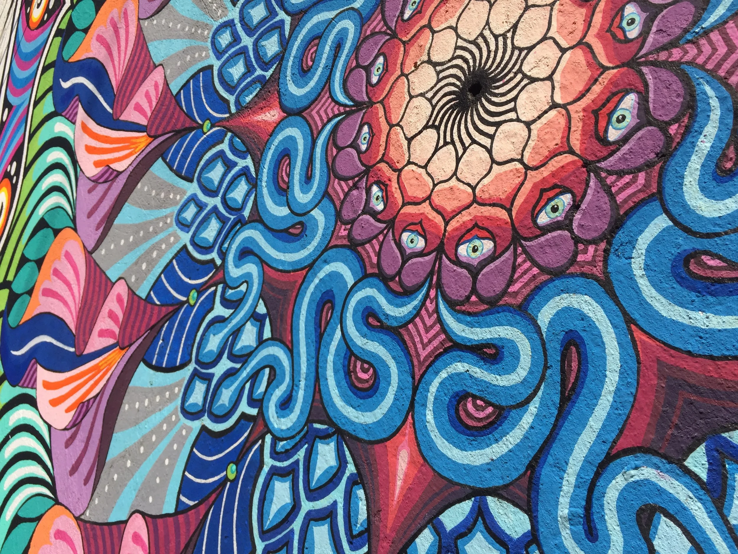 3m x 3m Acrylic, street mural en el barrio de Santa Cruz.